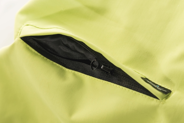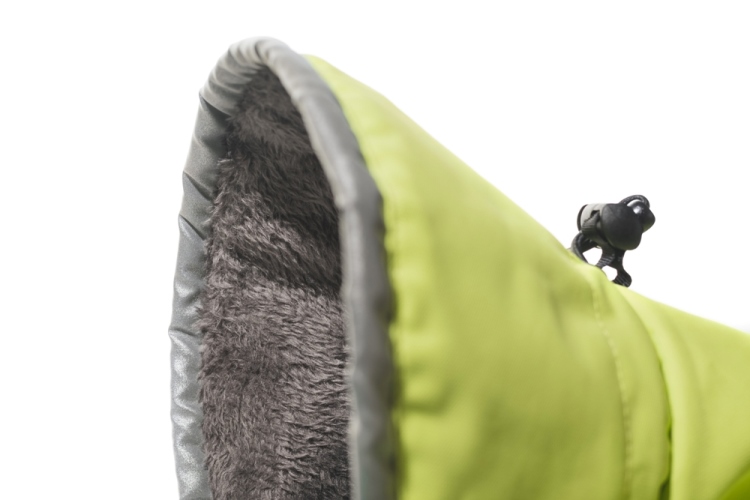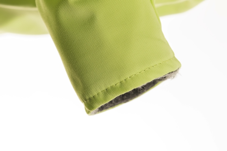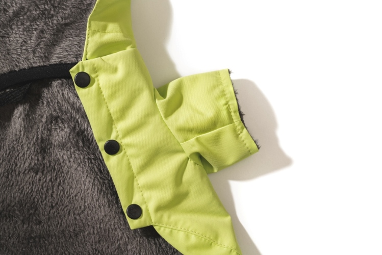 MIT 抗靜電刷毛布料,保暖舒適。搭配前項三點鈕扣設計,穿脫方便兼顧防水保護。領頂採用 3M 反光條,增加夜間行走的安全性。